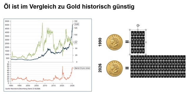 - Historisch hohe Gold/Öl-Ratio deutet auf Unterbewertung von Öl hin